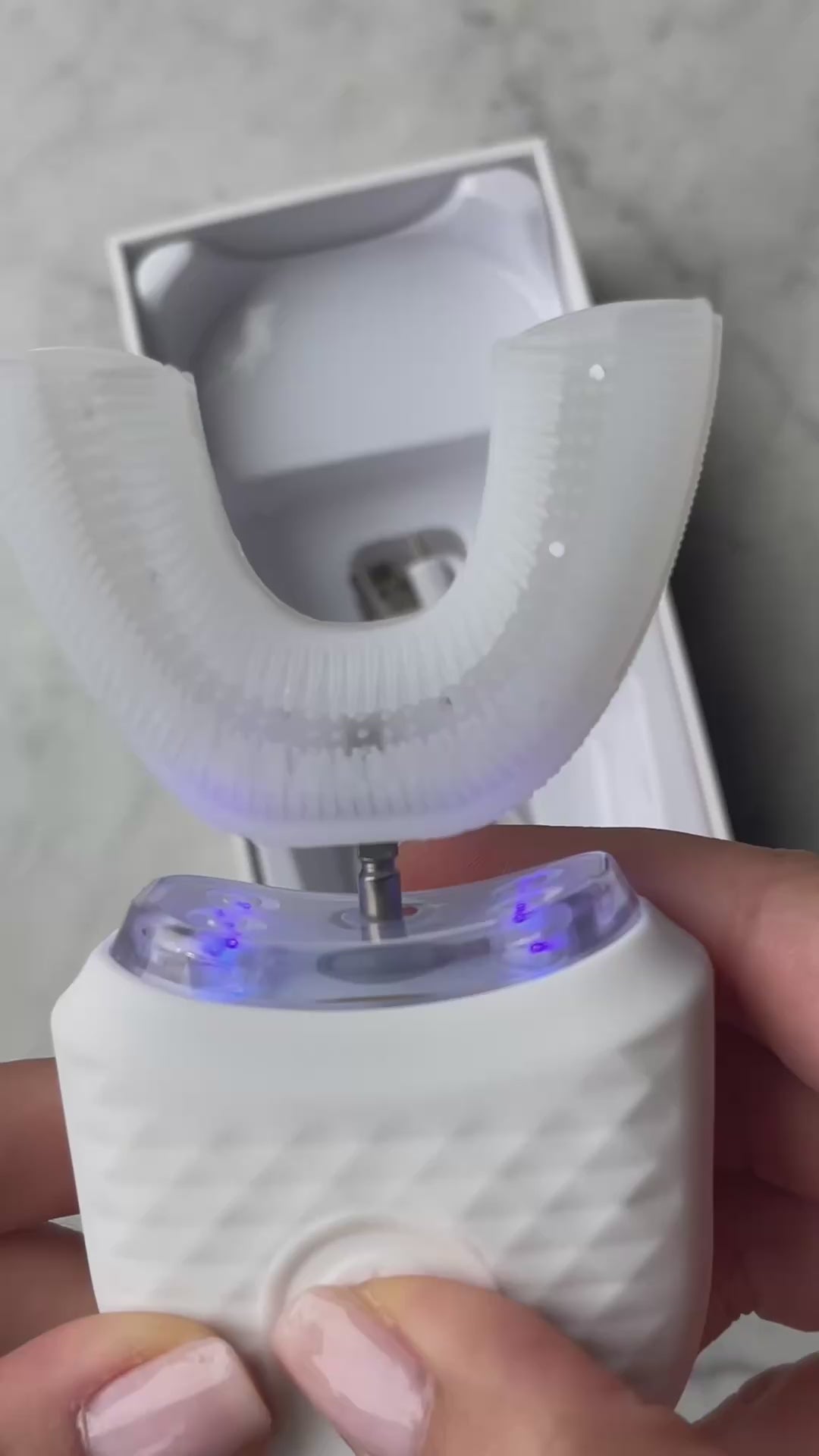 Conçue avec des dentistes, cette brosse à dents sonique en U nettoie toutes vos dents en 45 secondes.
